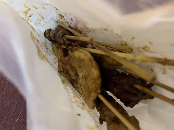 小編買了雞皮、甜不辣、雞心、雞屁股、雞肉串,吃起來真得不錯,醬汁鹹甜鹹甜夠味,好吃,