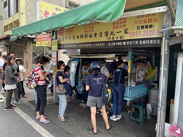 排隊人龍非常的長,但老闆的炸蔥油餅跟結帳的速度也是飛快。