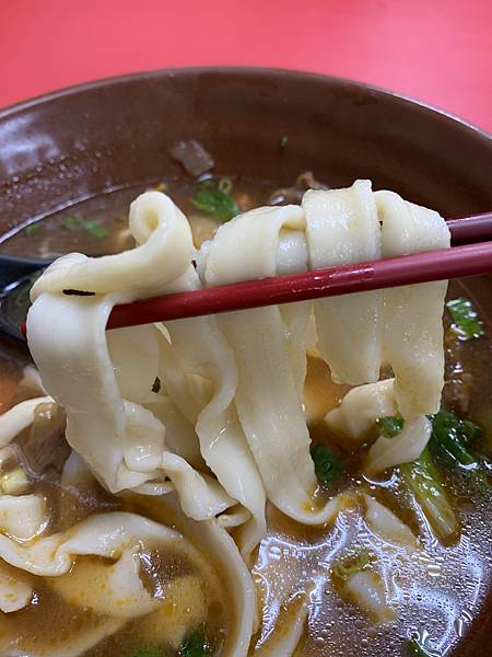 麵條是寬版的麵條,口感吃起來個人覺得太偏軟,覺得嚼勁不太夠!